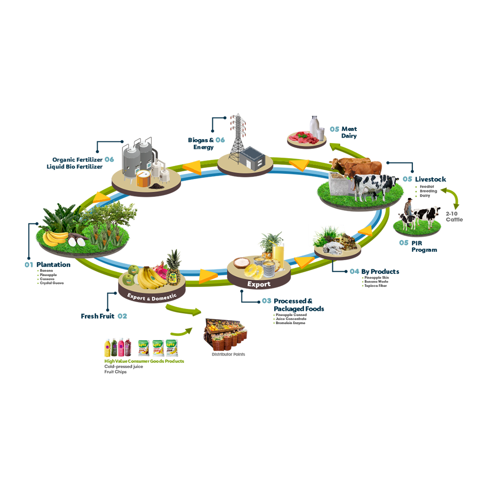 Great Giant Foods produces “zero waste” products. Solid and liquid waste created by their upstream as well as downstream business are recycled into other useful materials like cattle feed or to produce bromelain enzymes, an important component of organic fertilizers. By implementing green practices through the supply chain, they have reduced their fossil fuel usage by 30%, decreased the use of inorganic fertilizers by 40%, and increased the yield of their products by 40%.